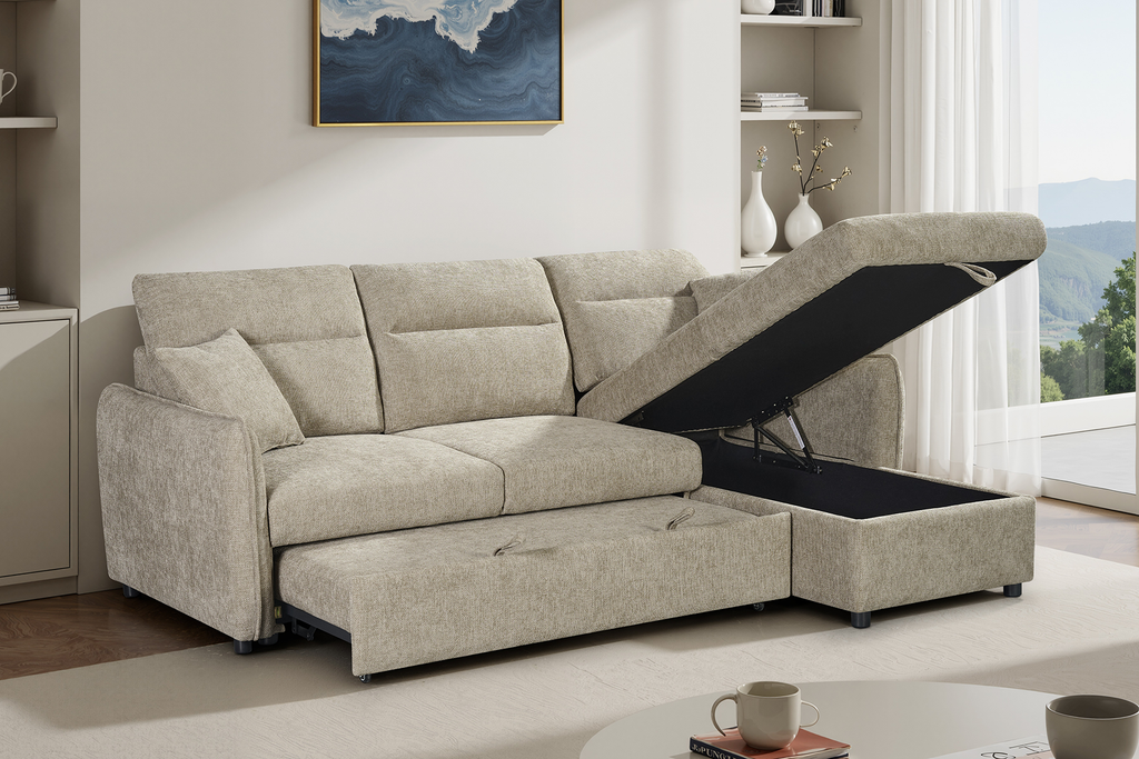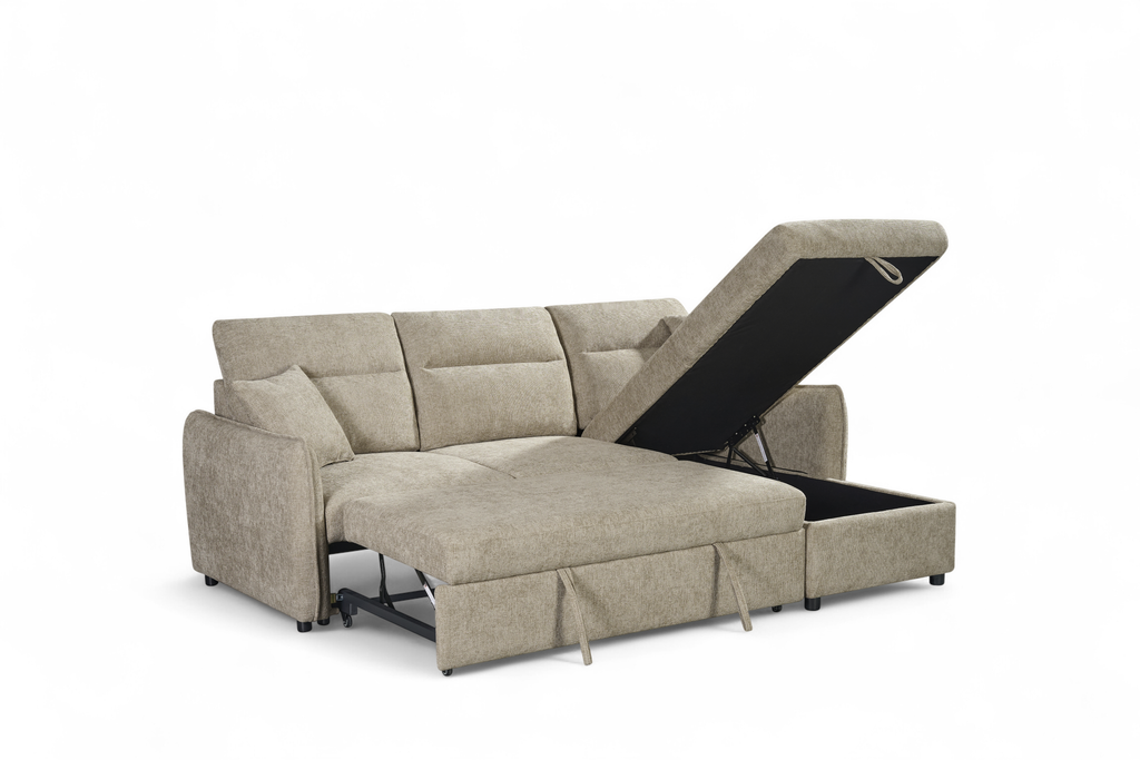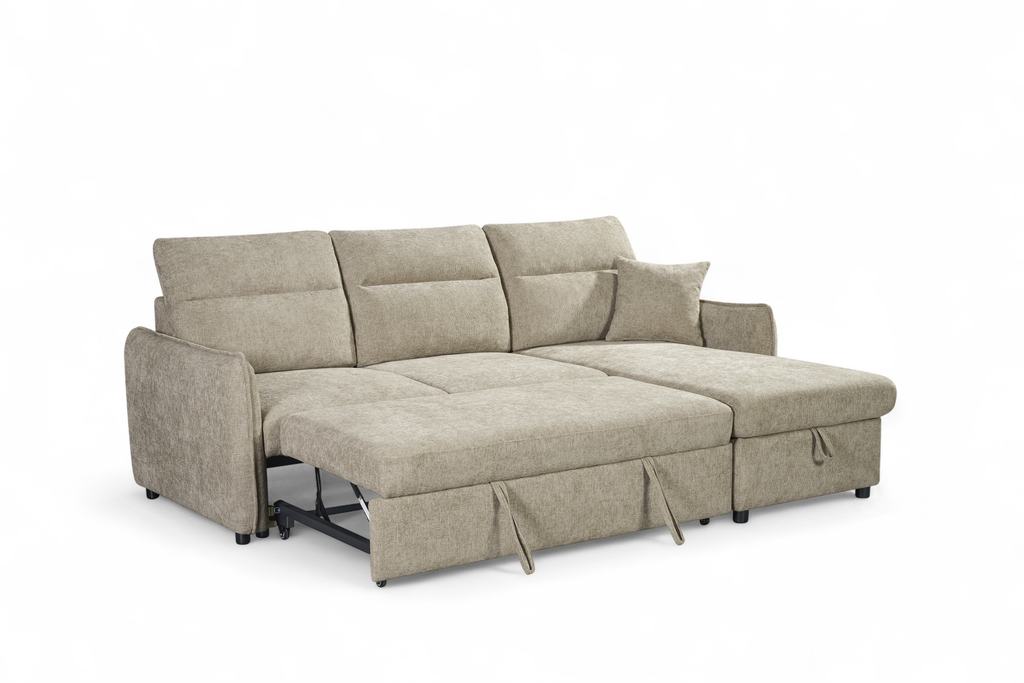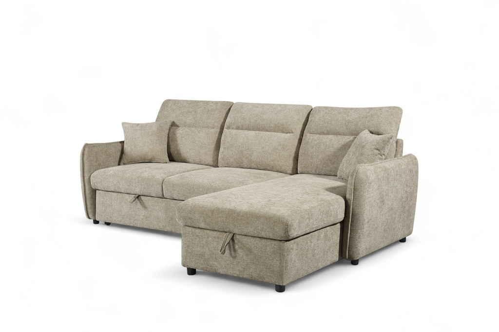 Beige Chenille Fabric 2C1 Corner Sofabed with Storage ARCHIE