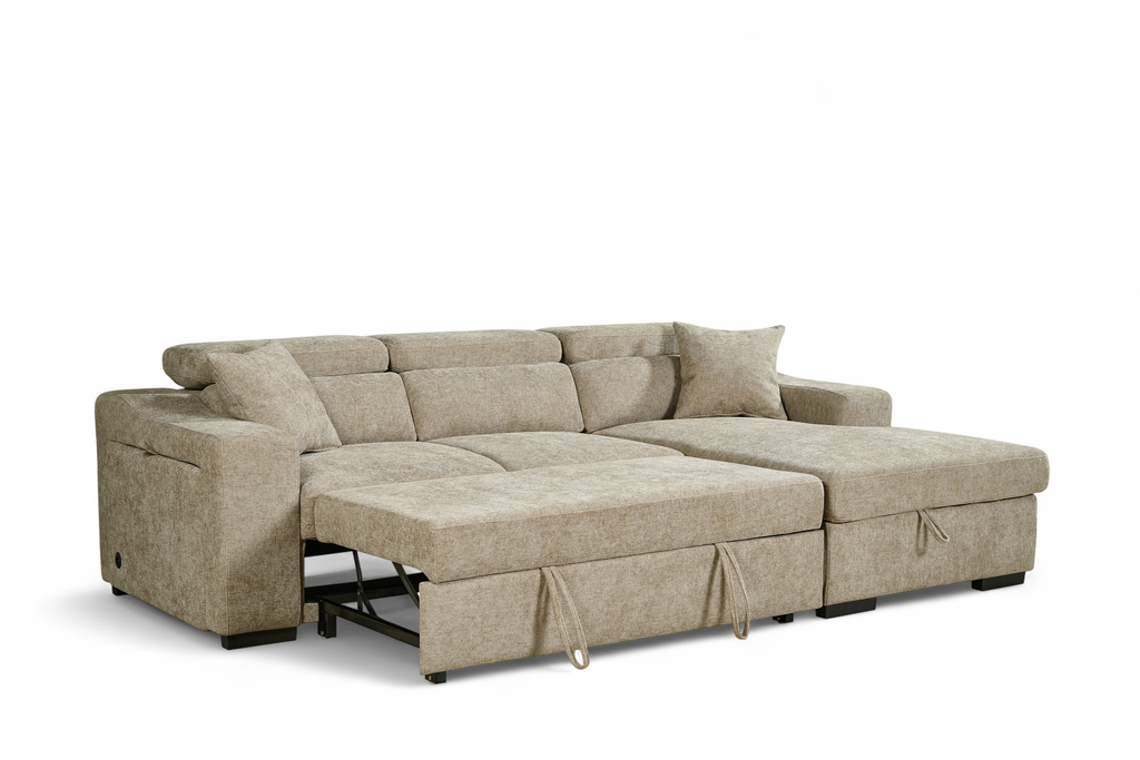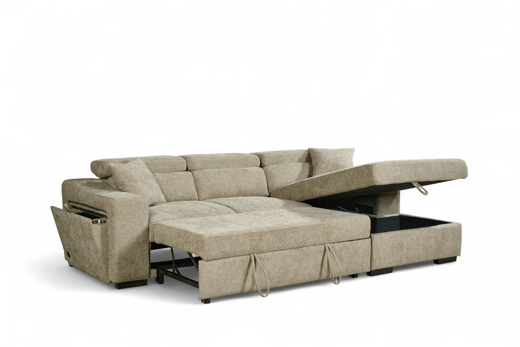 Beige Chenille Fabric 2C1 Corner Sofabed with Storage ARTHUR