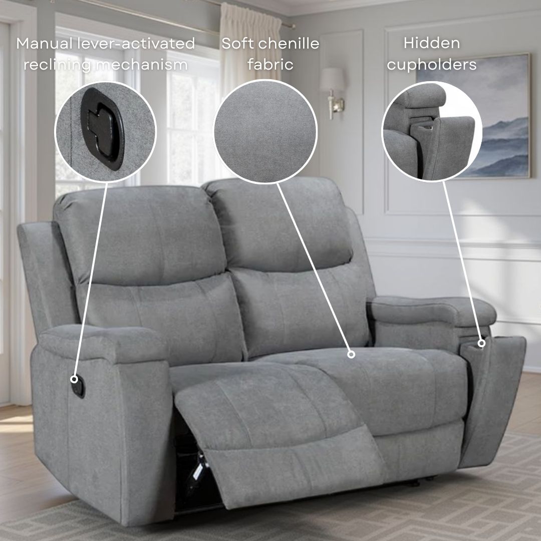 Chenille Fabric Dark Grey Manual Recliner Chair VISCONTI