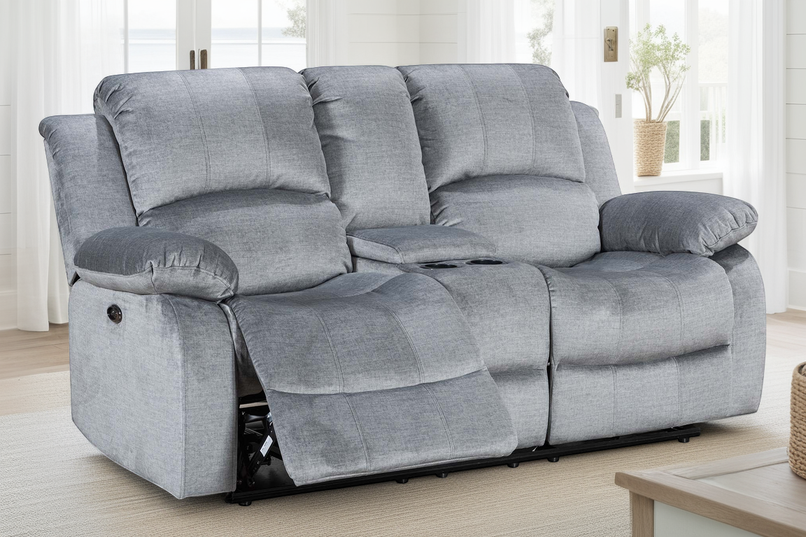 Chenille Fabric Grey 2 Seater Electric Recliner Sofa with Cup Holders and Console VALENCIA