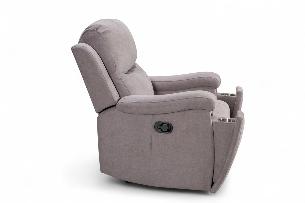 The Visconti Chair provides everything needed to spend your leisure time in comfort. It features manual lever-activated reclining mechanism on both seats, including a footrest section. The front armrest sections can be pulled out to reveal convenient cupholders, without cluttering the design when not in use. The ergonomic back design and sprung seats highlight the Visconti Recliner Chair's focus on comfort. The backrests, armrests, and seats are filled with medium-density foam. The Visconti 1 Seater Manual Recliner Chair is wrapped in elegant, easy to maintain chenille fabric in light grey. The neutral colour of the upholstery and the classic settee silhouette make it easy to introduce this recliner into a variety of interiors without clashing with existing decor.