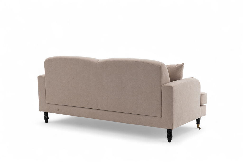 The Fabric Beige 3 Seater Ashton Sofa offers a simple yet contemporary look, combining elegance with comfort to enhance any decor. Its slightly rounded pintucked arms and clean straight lines contribute to a sleek design, while the subtly flared back cushions provide additional style and support. Sink into the plush foam-filled seating cushions, backrest, and arms for a truly relaxing lounging experience.