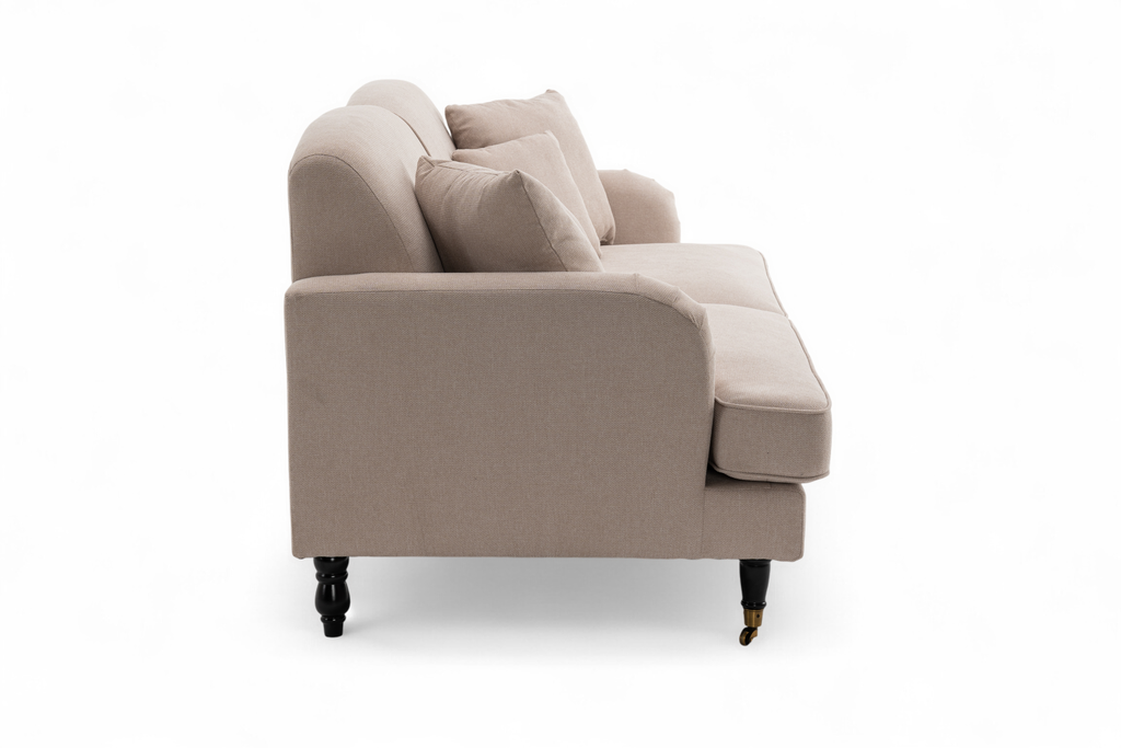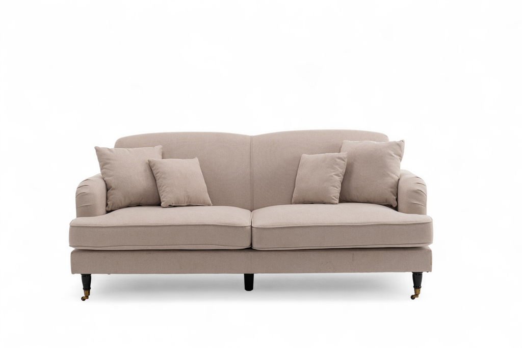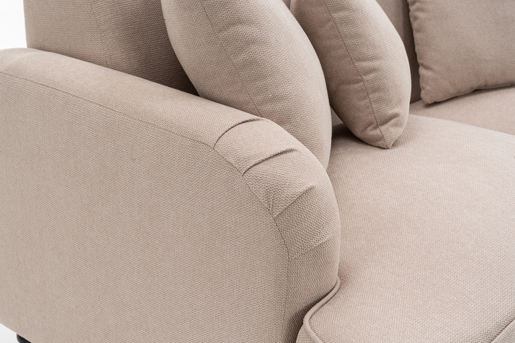 Upholstered in high-quality beige fabric, this sofa exudes a luxurious feel and boasts a warm hue that will fit any decor. The matching cushions complement the overall aesthetic, creating a cohesive and inviting atmosphere in your home.