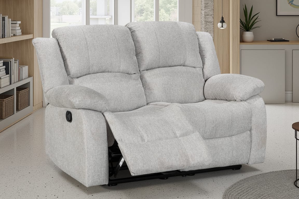 The Light Grey Fabric 2 Seater Varesa Recliner Sofa offers a comfortable, supportive seat with padded cushioning across the back, arms, and footrest areas. Its manual reclining mechanism allows you to adjust into a laid-back position with a pull-lever, making it suitable for everyday relaxation.