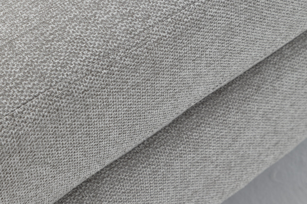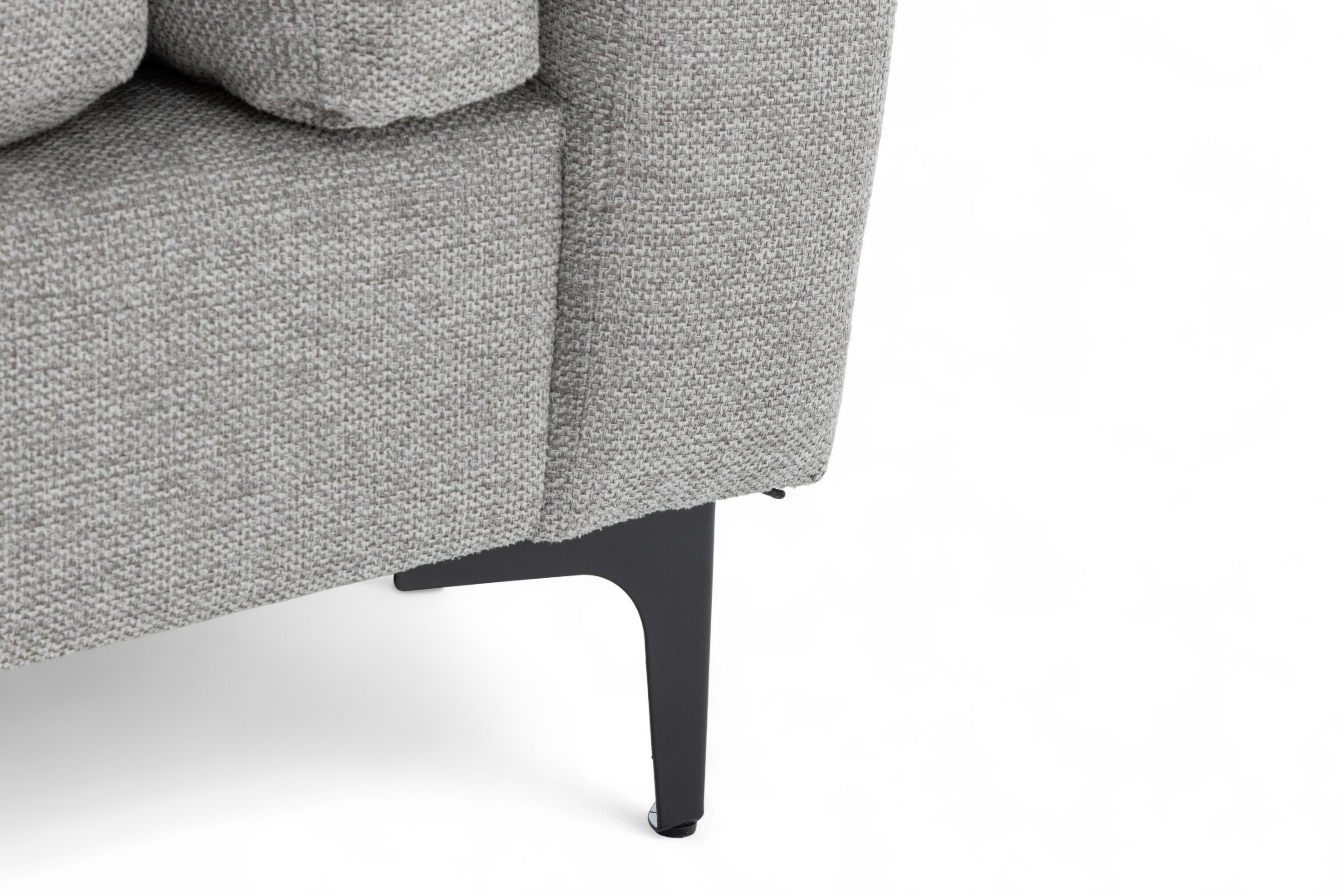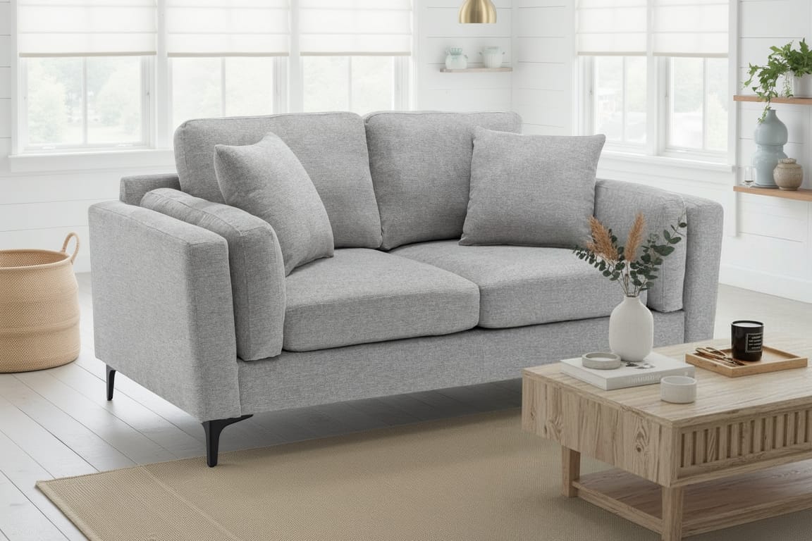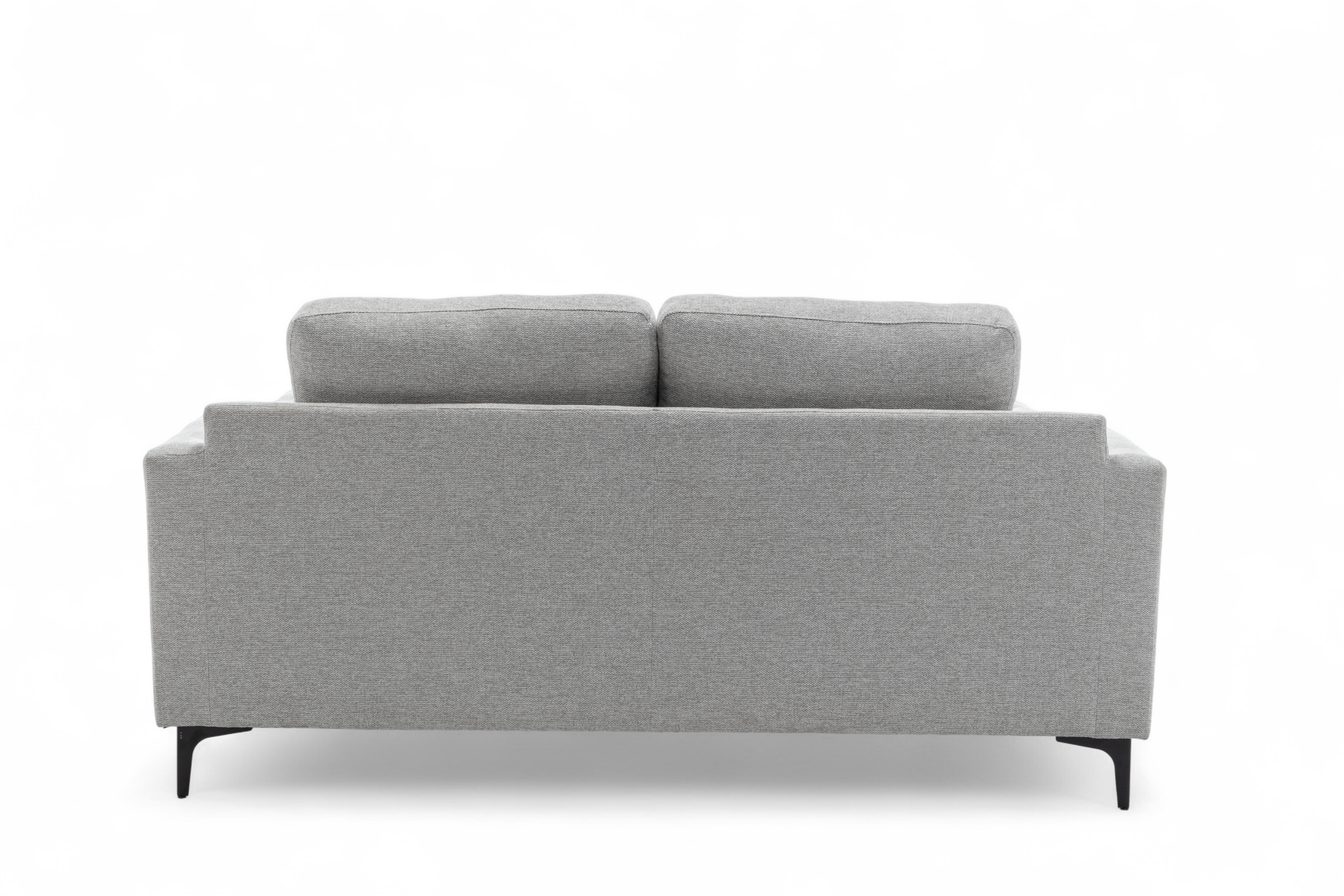 The Marghera is an elegant, contemporary-style sofa upholstered in light grey fabric. It is built on a hardwood frame, with pocket-sprung medium density foam-filled seats. Alongside the fixed backrest cushions, it comes with matching accent cushions and side cushions. The black angled feet add to the modern silhouette of this sofa. This 2 seater variant is quite compact and perfect for smaller spaces, as well as a part of a bigger set.