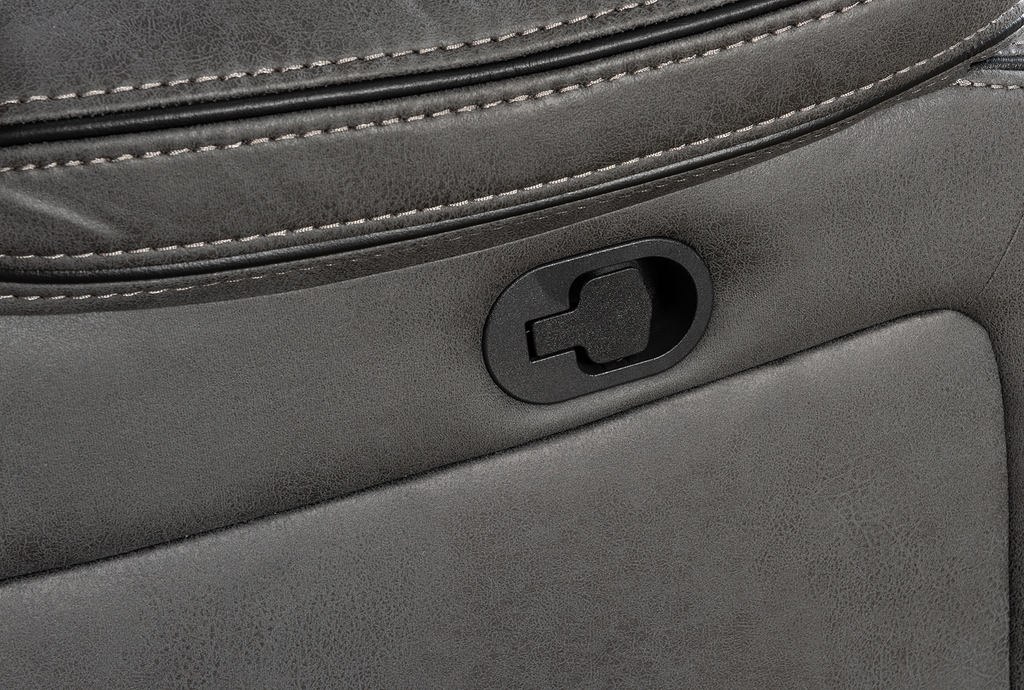 The Vegas Sofa is a multi-functional seating option designed with utility and comfort in mind. The seats feature a lever-operated manual reclining mechanism that controls both the backrest and the footrest. The 2C2 configuration is made up of two two-seaters, on left and right, and a connecting corner unit in the middle. Both two-seater sections feature a drop-down console that includes cupholders and a wireless charging port.