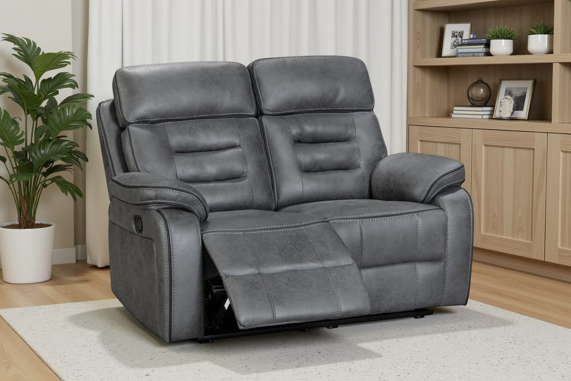 Faux Leather Grey 2 Seater Manual Recliner Sofa VENETIAN