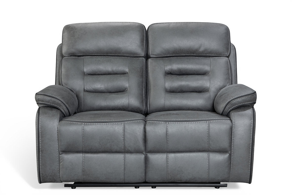 Relax in comfort and style with this power recliner sofa, made to modernise your living room. The 2 seater electric recliner sofa Venetian features a button-operated electric reclining mechanism that controls the backrest and the footrest. The faux leather upholstery in grey offers styling versatility and longevity, and the modern silhouette prioritises comfort with the in-built lumbar support and a cushioned headrest. The seating is filled with medium-density foam to ensure top-tier comfort. The button panel includes an USB charging port. Ideal for movie nights, cosy evenings, and everyday use.