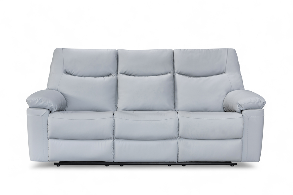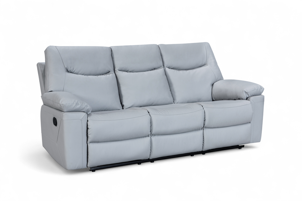 Faux Leather Light Grey 3 Seater Manual Recliner Sofa COLUMBIA