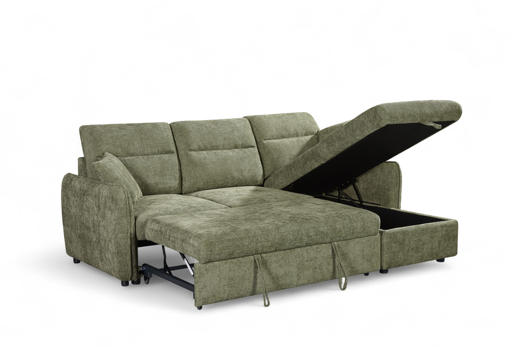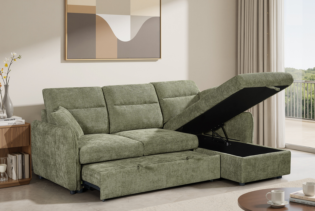 Green Chenille Fabric 2C1 Corner Sofabed with Storage ARCHIE is backordered and will ship as soon as it is back in stock.