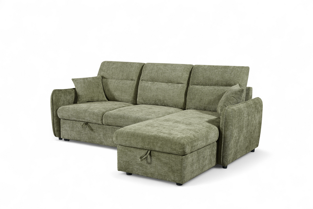 Green Chenille Fabric 2C1 Corner Sofabed with Storage ARCHIE