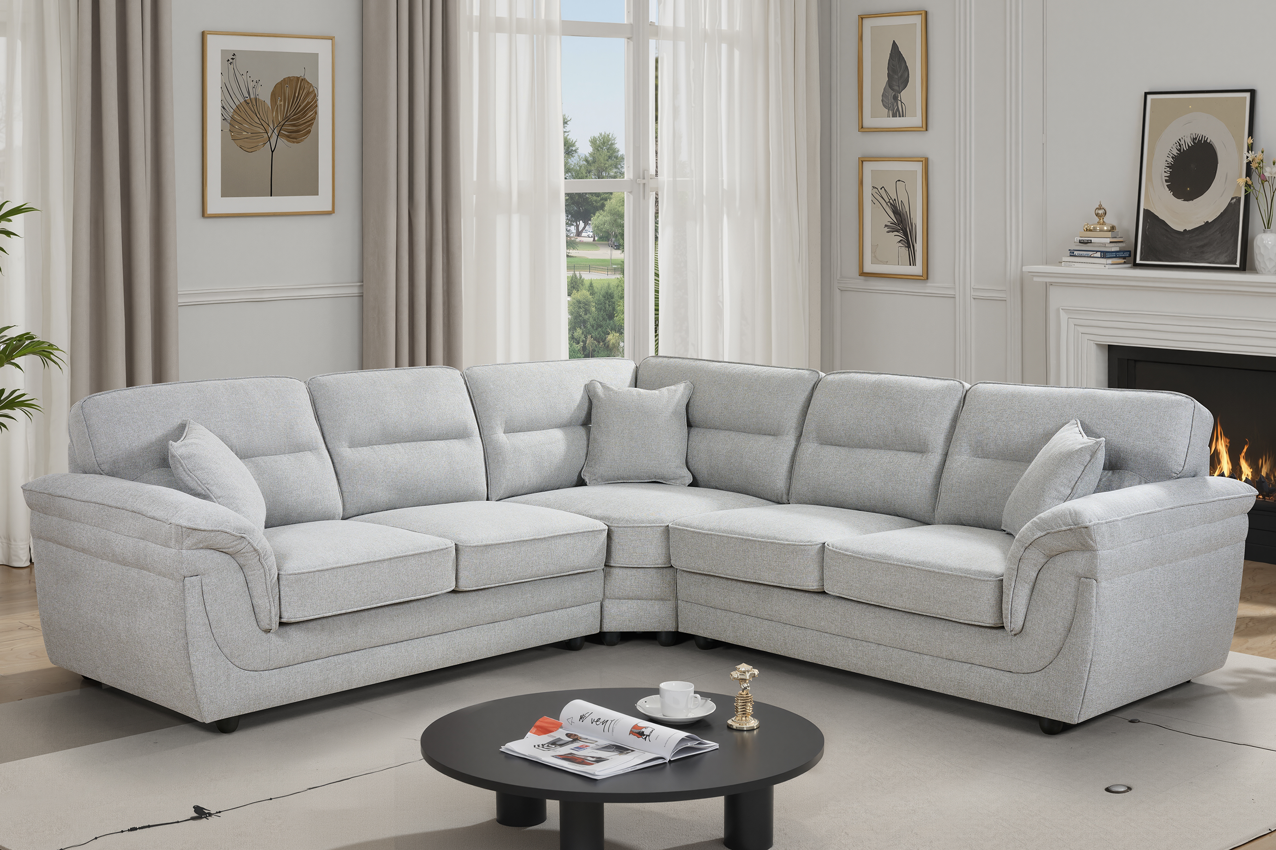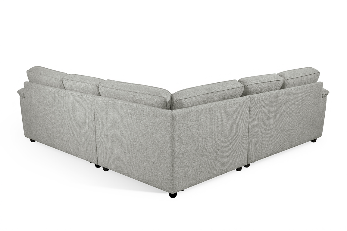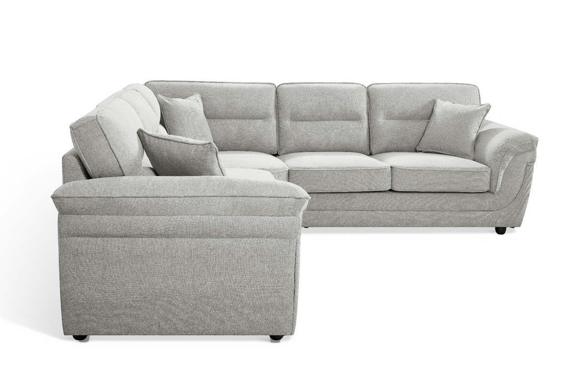 The Grey Chenille Elliot Corner Sofa offers modern comfort in a practical, spacious design. Upholstered in grey chenille fabric, it brings a warm and neutral look that blends easily with various interiors. The five-seat layout provides ample room for family or guests, while the supportive backrests and wide armrests ensure everyday comfort.