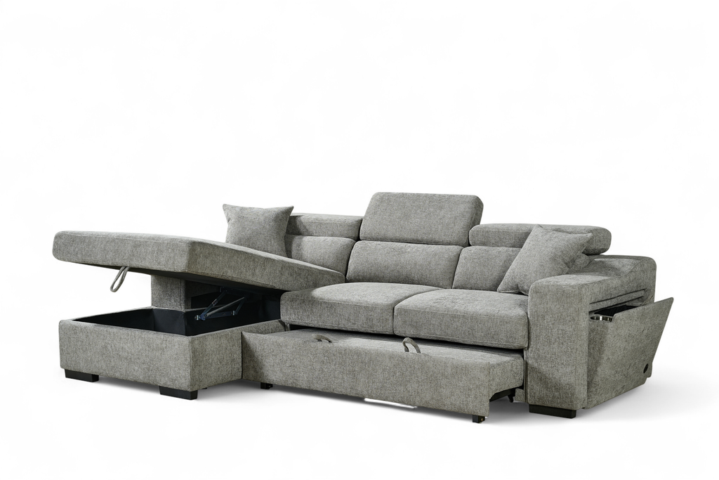 Grey Chenille Fabric 1C2 Corner Sofabed with Storage ARTHUR
