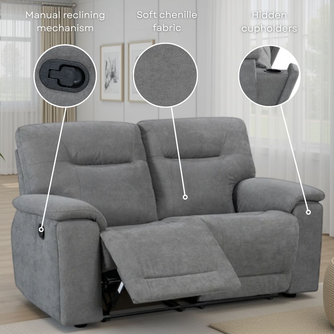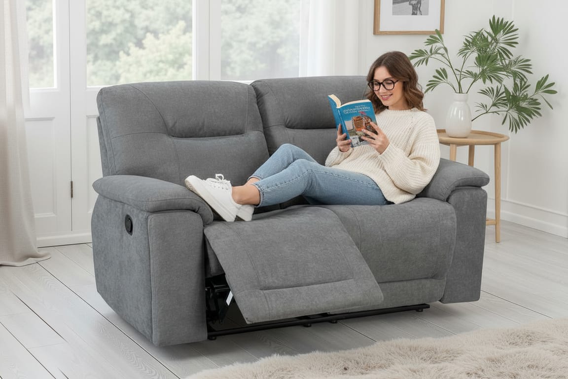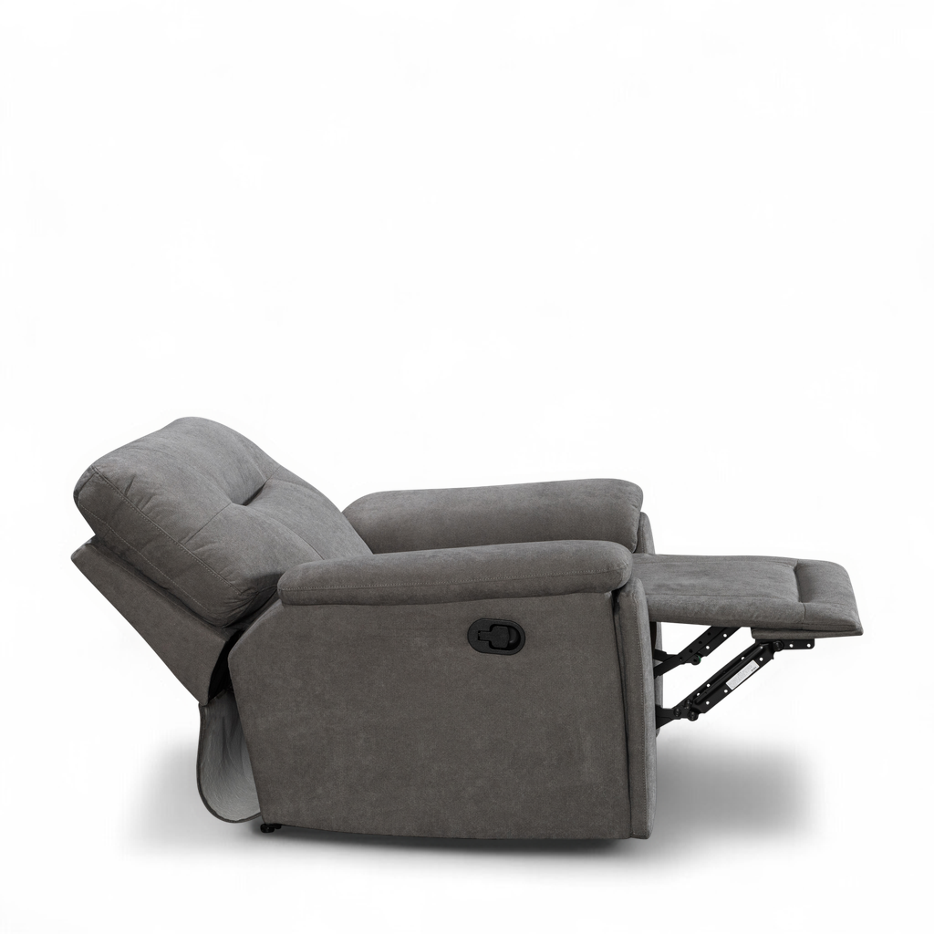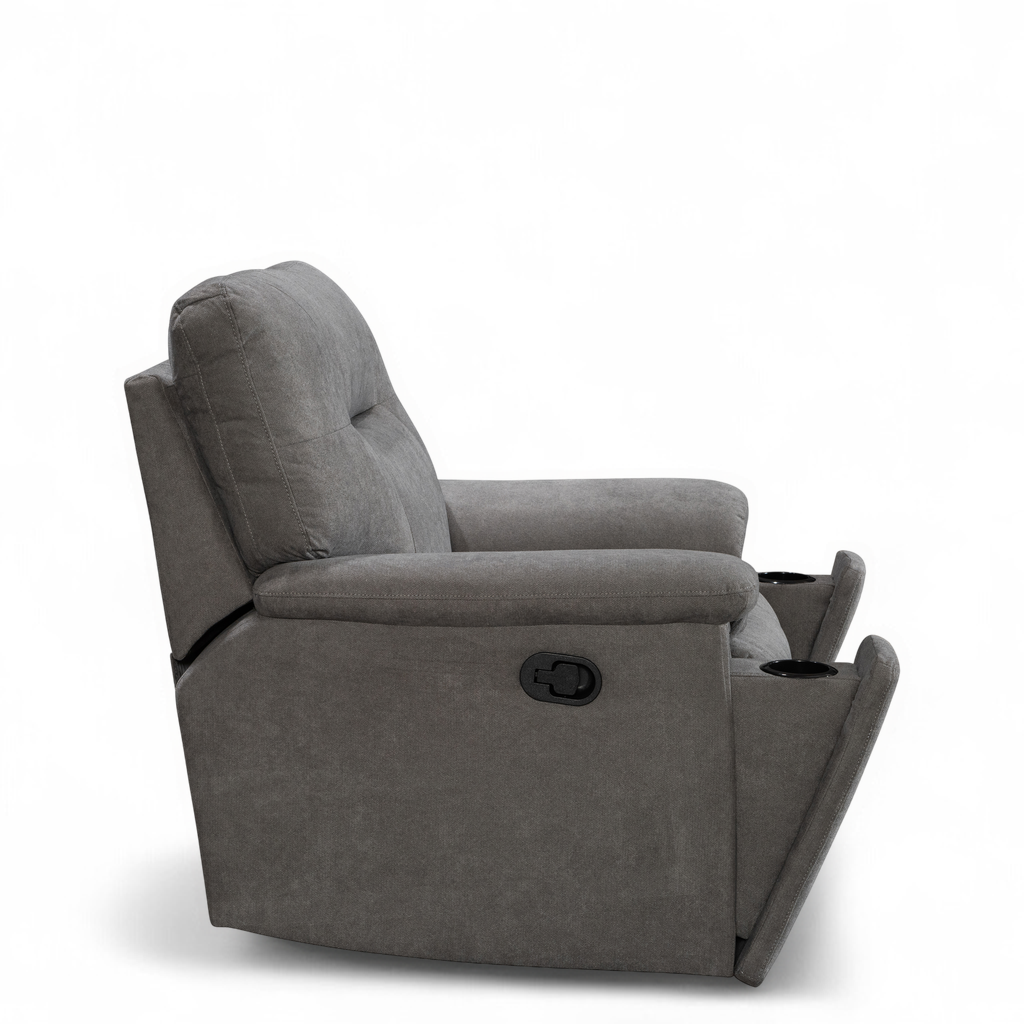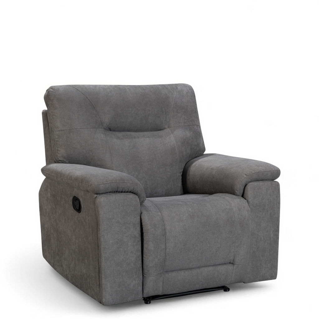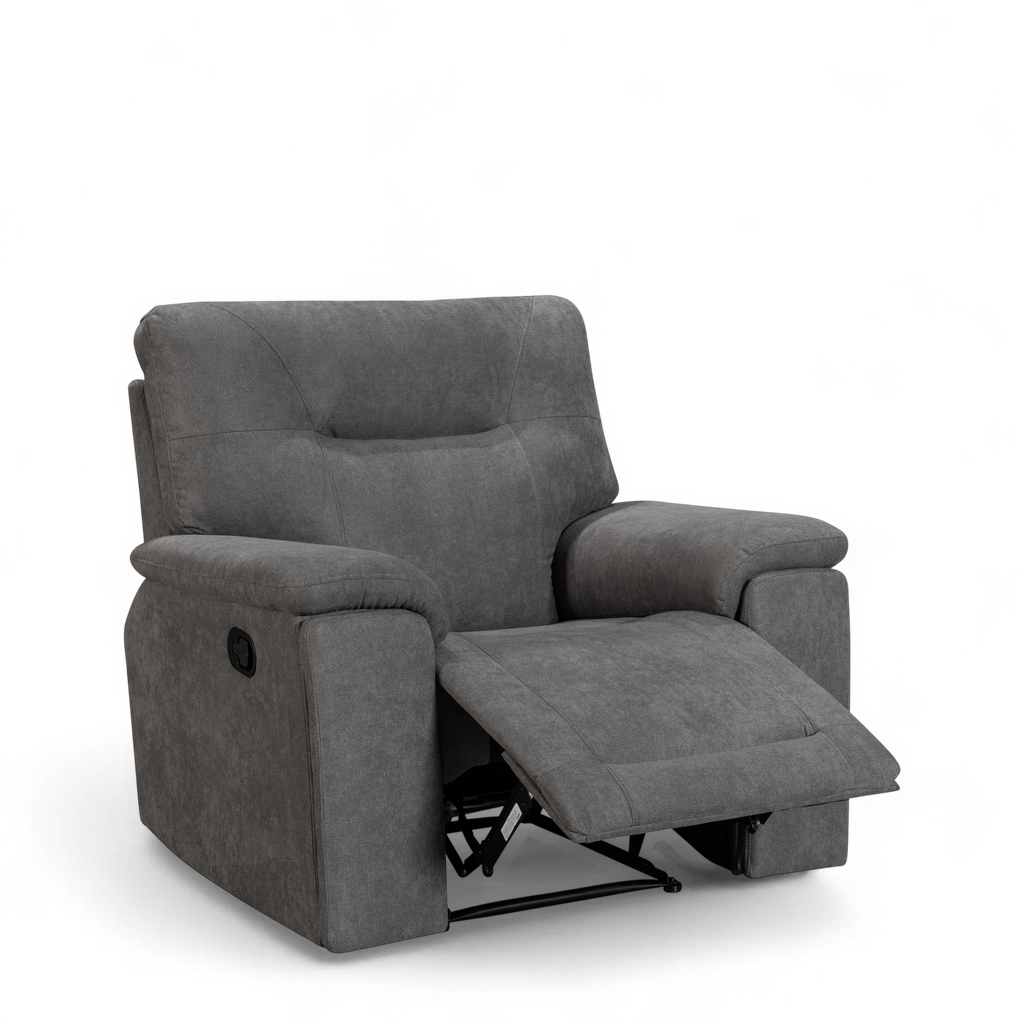 The Murcia range offers everything you need to rest and catch a break. The manual reclining functionality allows you to adjust to your preferred position, including the footrest. The front armrest sections pull out to reveal convenient cup holders. The classic recliner design and the grey fabric upholstery offer versatility in adding it to existing decor and modern interiors. The backrest and armrests are well-padded for optimal comfort during your leisure time.