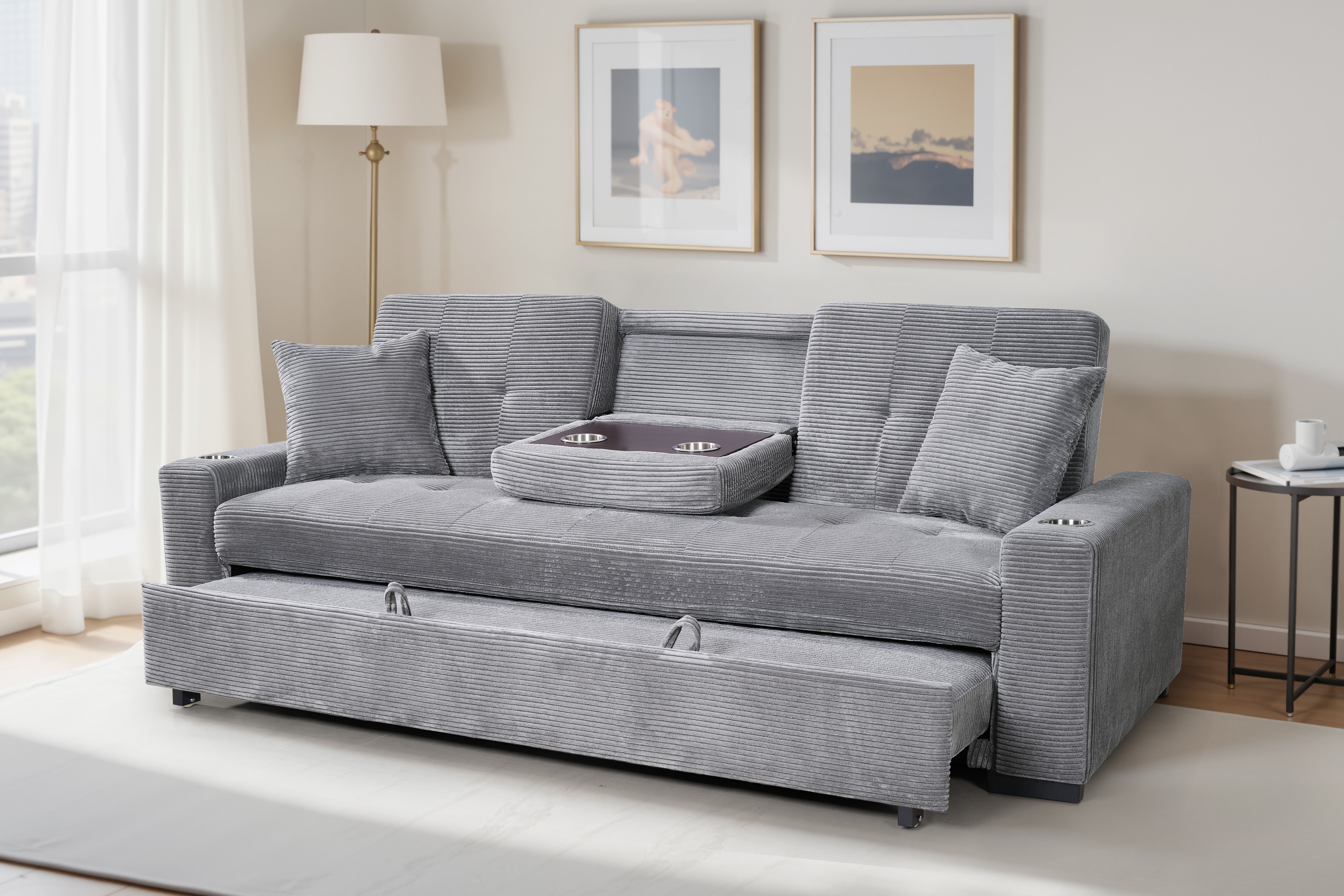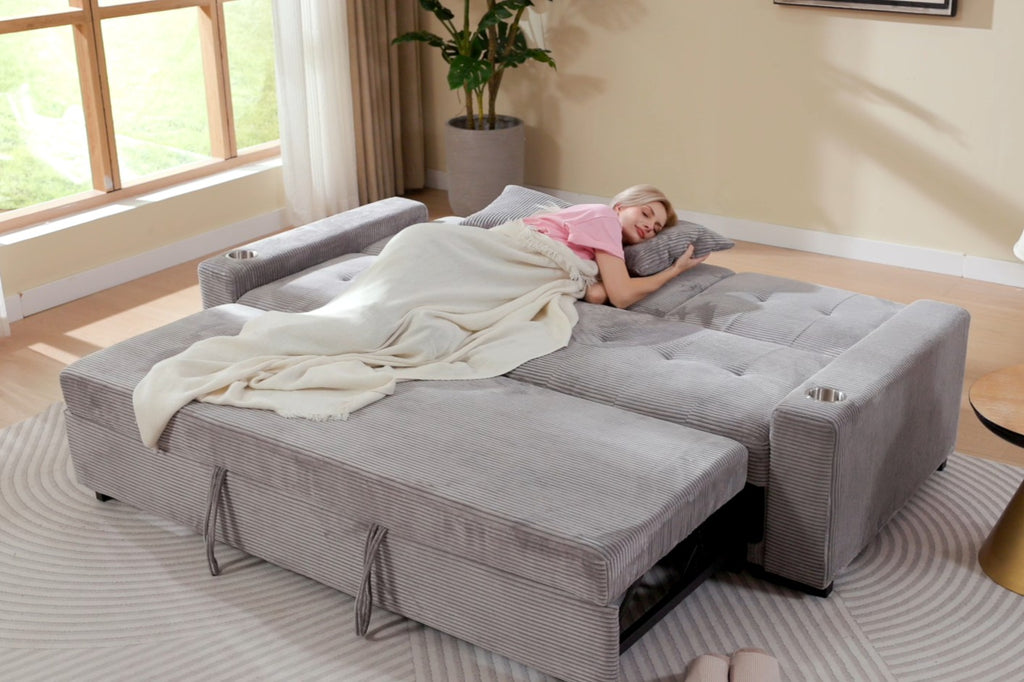 Grey Jumbo Cord 3 Seater Sofabed CHARLES