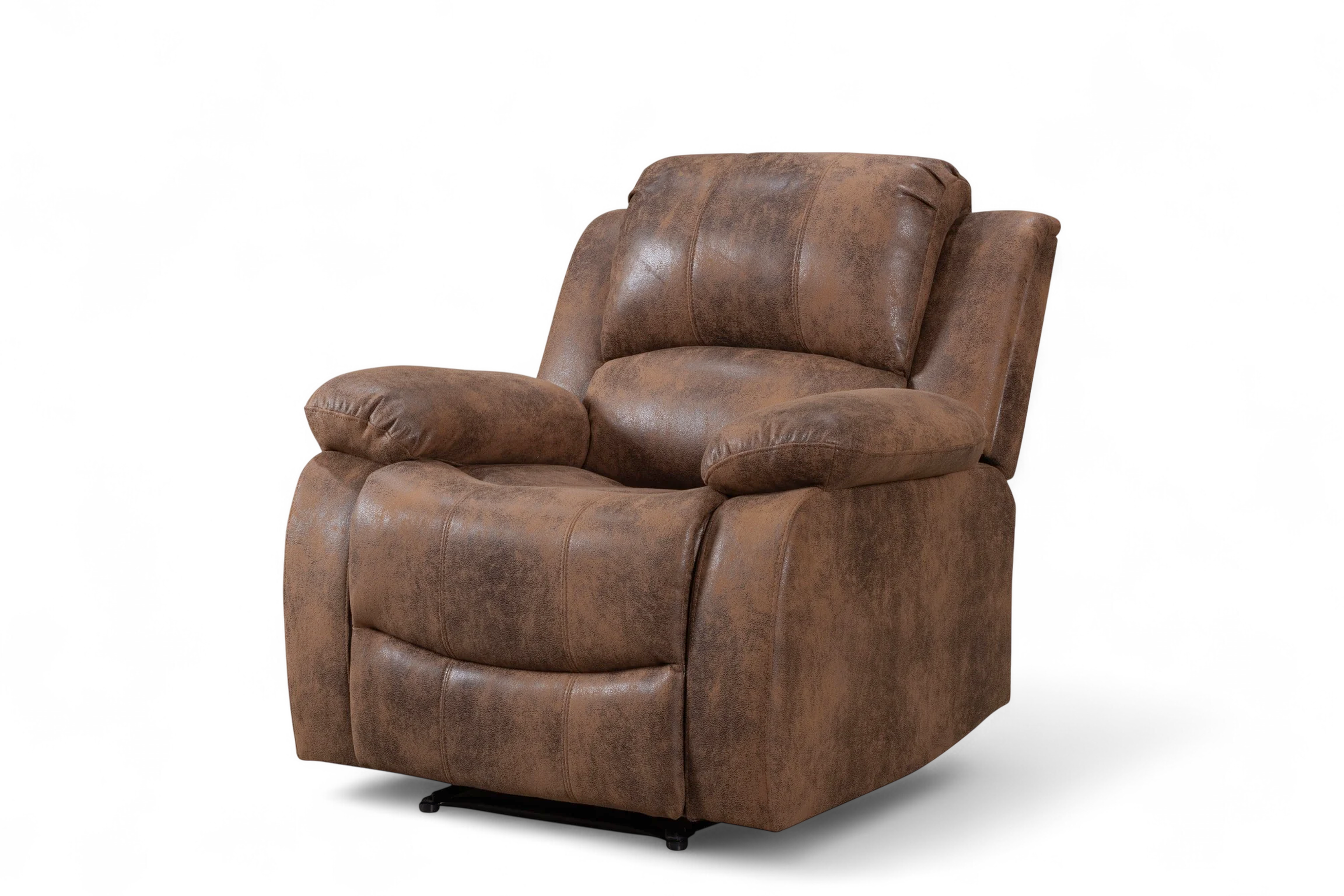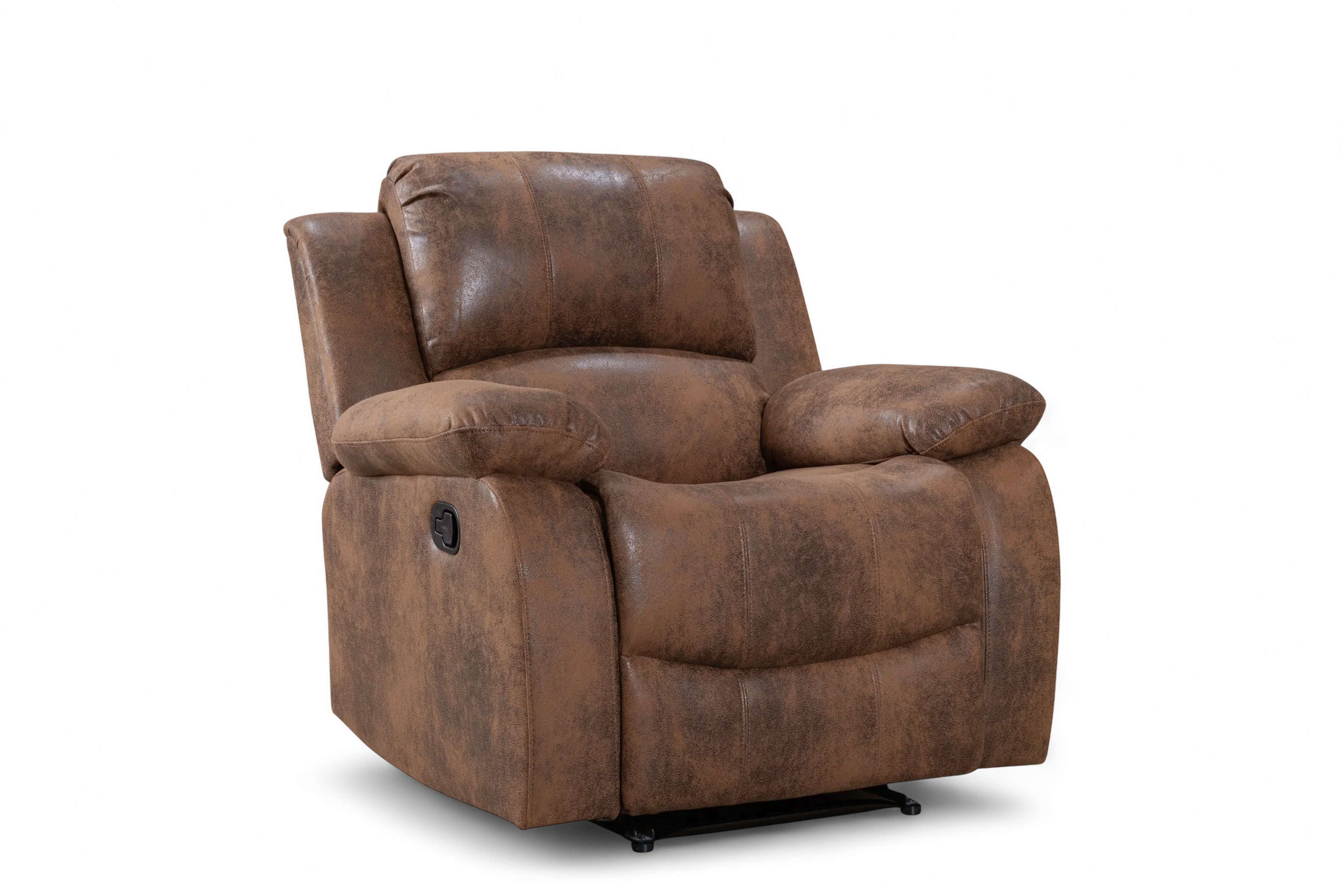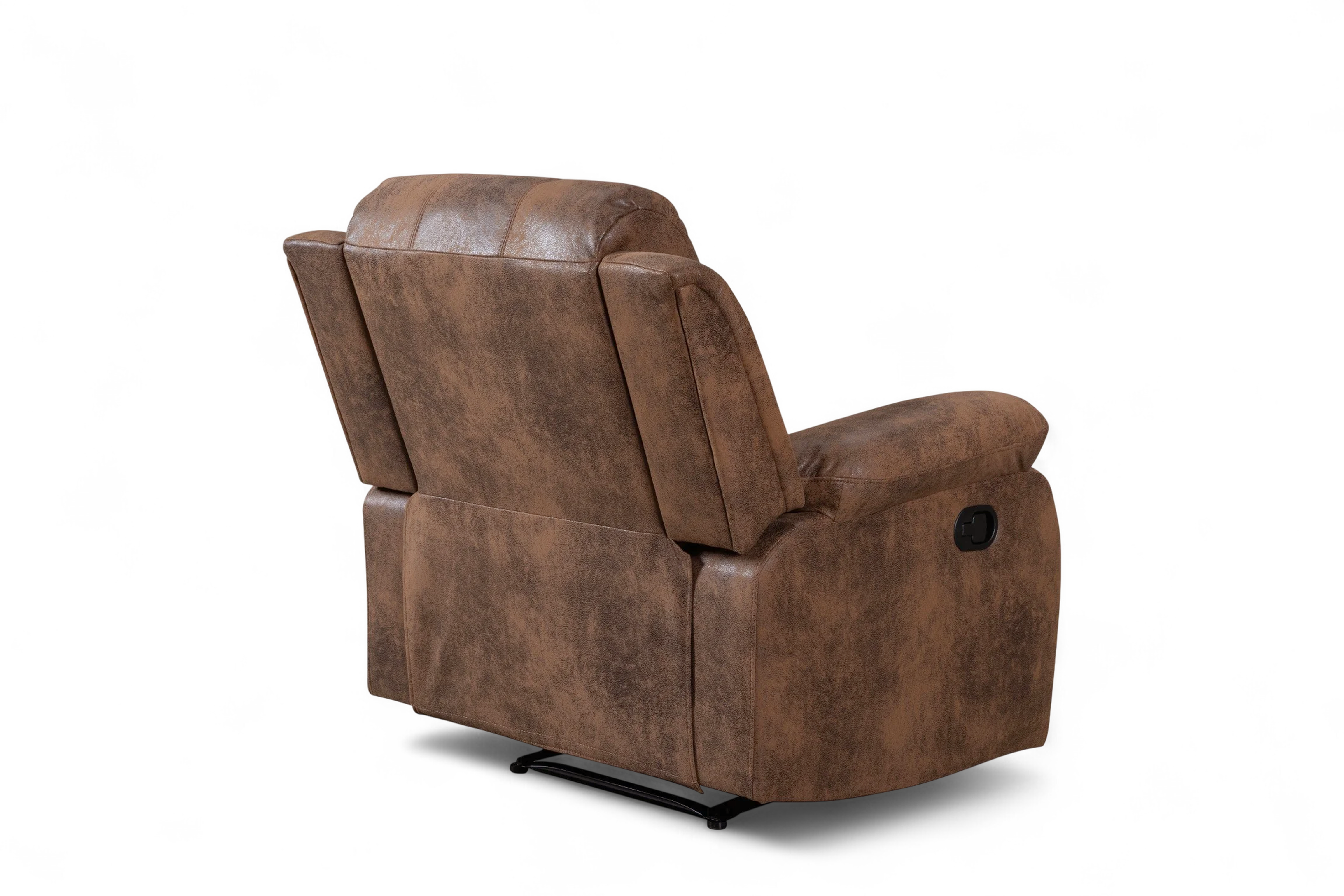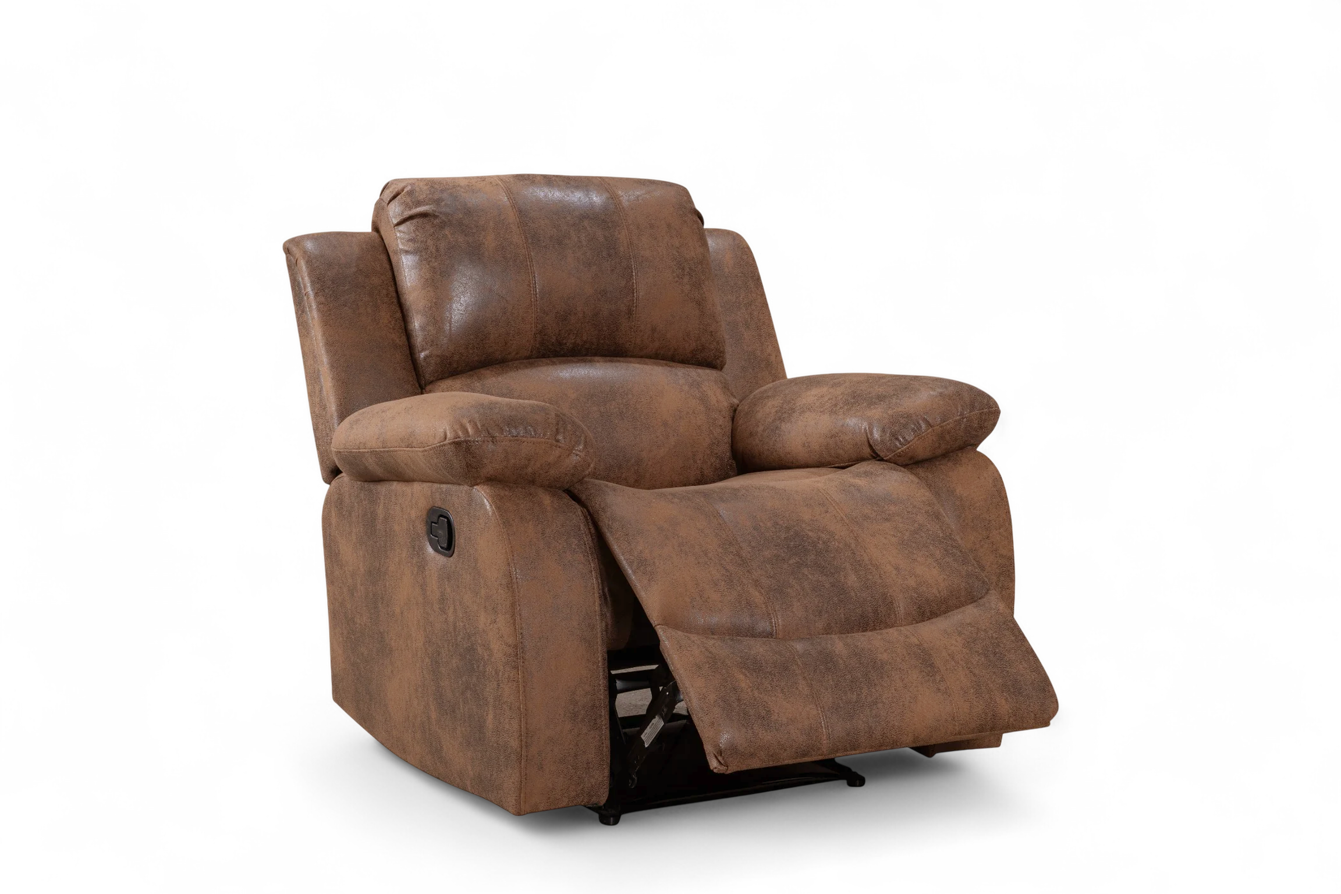 Introducing the Faux Leather Suede Brown Valencia Manual Recliner Chair, a sturdy and stylish addition to your living room, bedroom, or office space. Upholstered in high-quality faux leather with a suede-effect finish, this chair exudes a distressed leather look, adding character and charm to any setting.