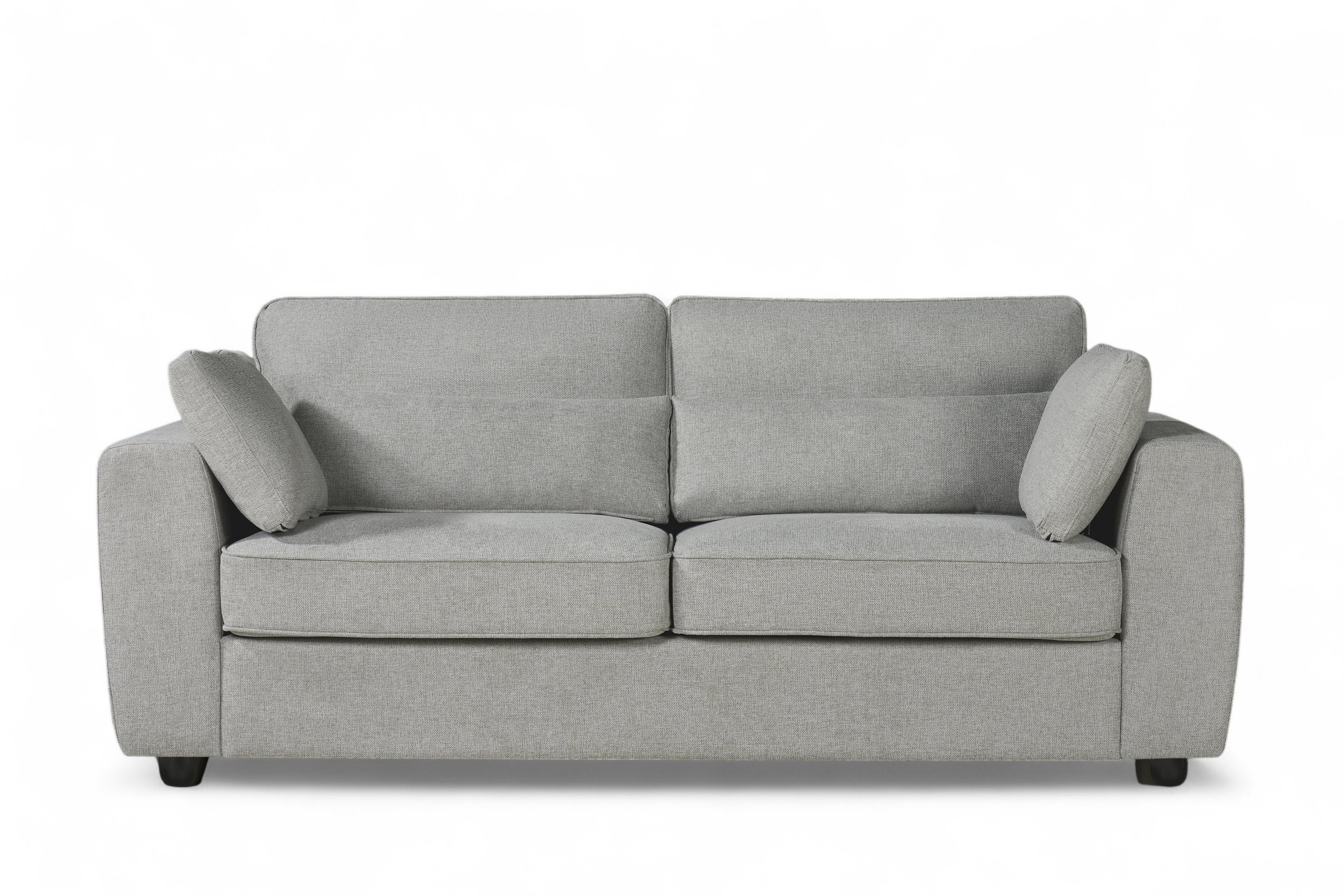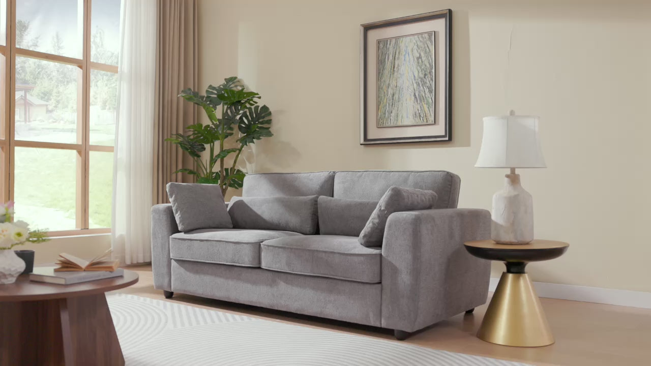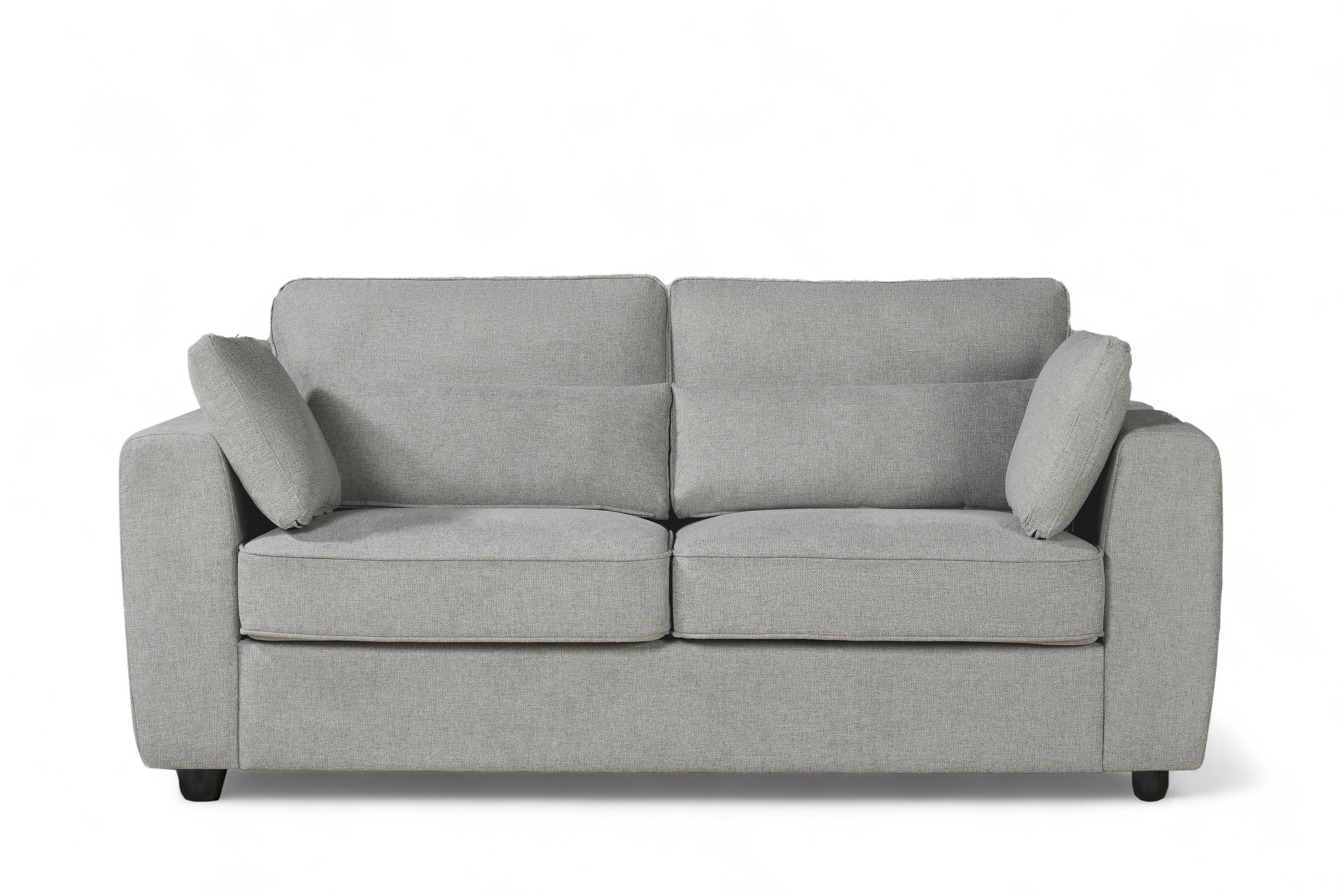 The Light Grey Chenille Fabric Alfie 3 + 2 Seater Sofa Set showcases simple, solid shapes with wide arms and deep seat cushions, finished in a light grey chenille fabric that adds a soft, textured feel. The fixed back cushions sit behind long lumbar-style cushions, giving added support and keeping a clean, structured look of the sofas. Rounded feet keep the base low and unobtrusive, and matching scatter cushions complete the design.