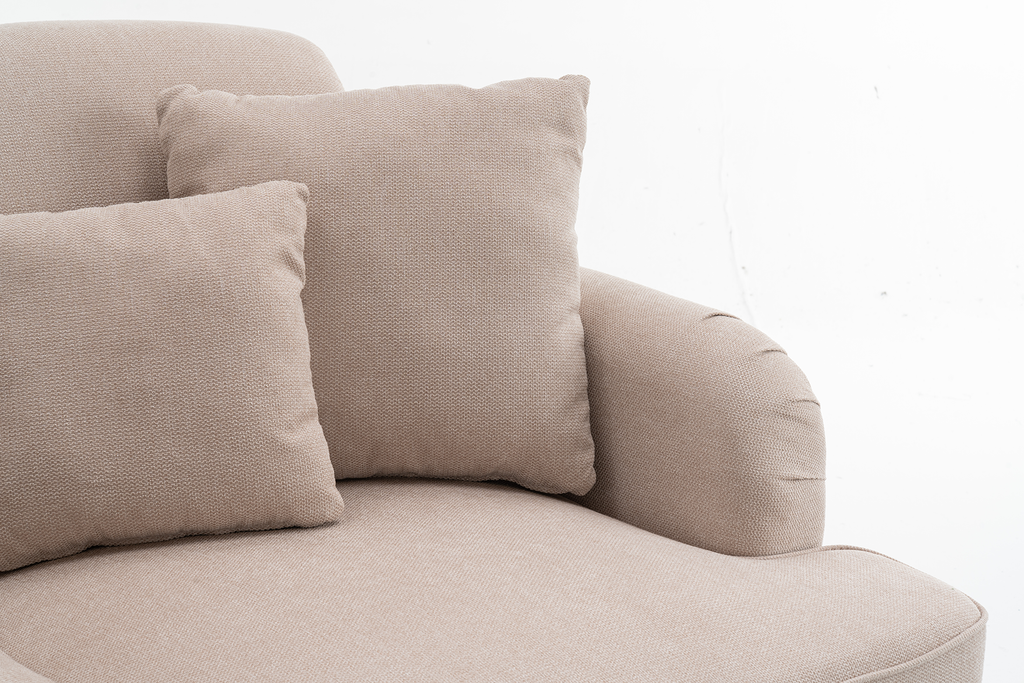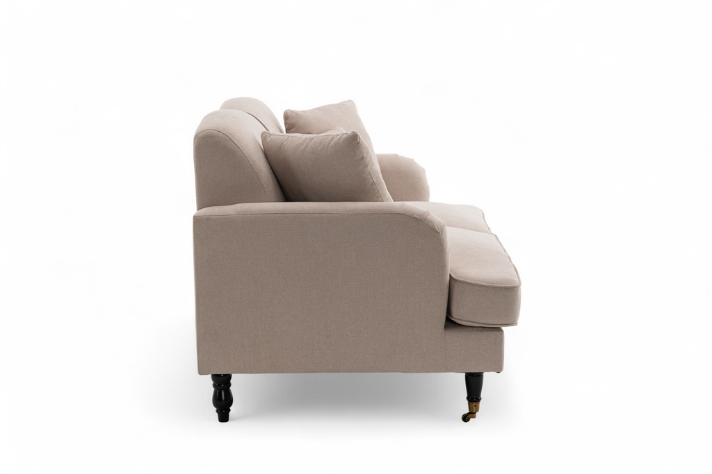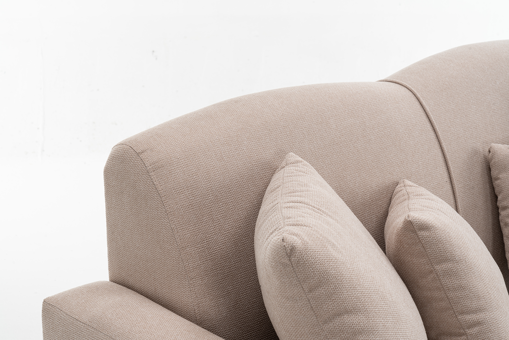 Upholstered in high-quality beige fabric, this sofa exudes a luxurious feel and boasts a warm hue that will fit any decor. The matching cushions complement the overall aesthetic, creating a cohesive and inviting atmosphere in your home.