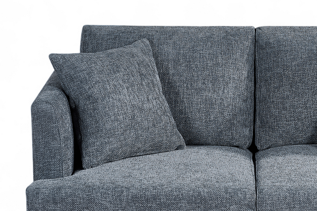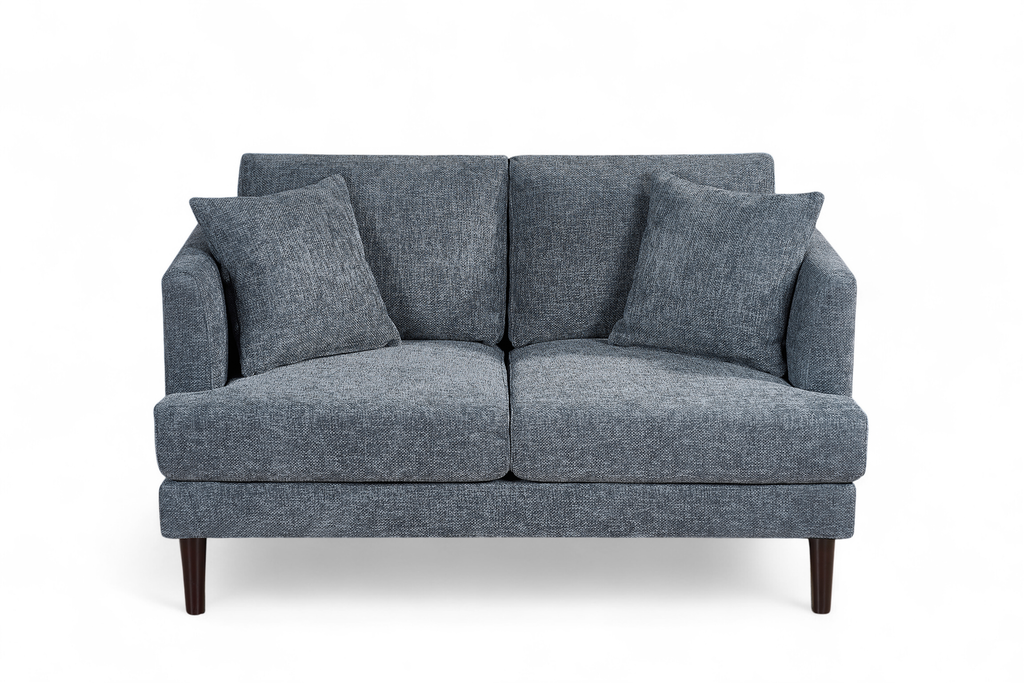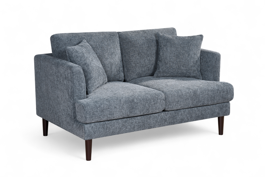 The Pale Blue Chenille Fabric 2 Seater Ravello Sofa is a compact and contemporary sofa meant for everyday use. It comes upholstered in a stylish blue chenille fabric. The accent cushions pictured are included with the sofa in matching fabric and colour. While designed with living rooms in mind, the 2-Seater Ravello Sofa can also be used as additional seating in a bedroom or a hall.