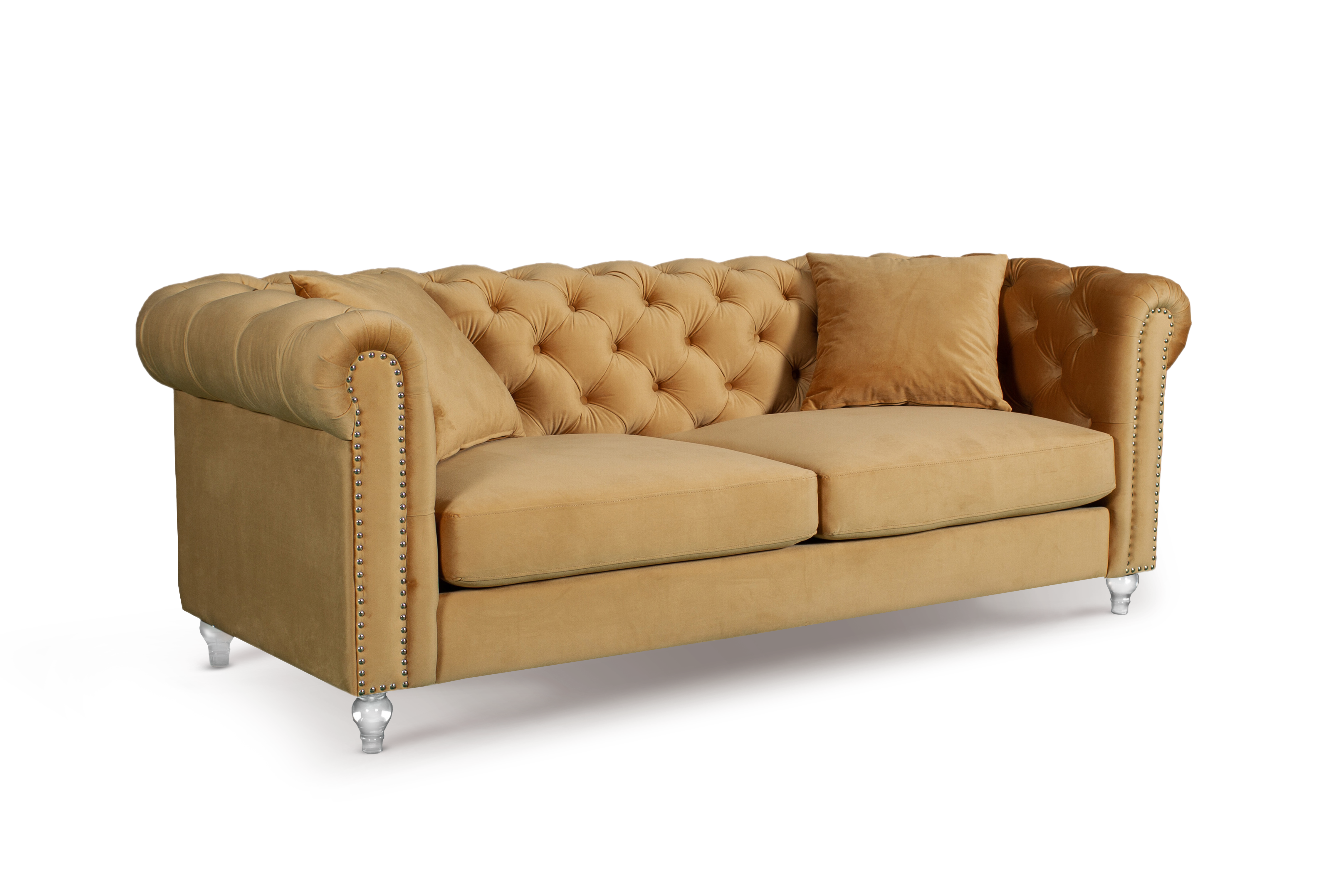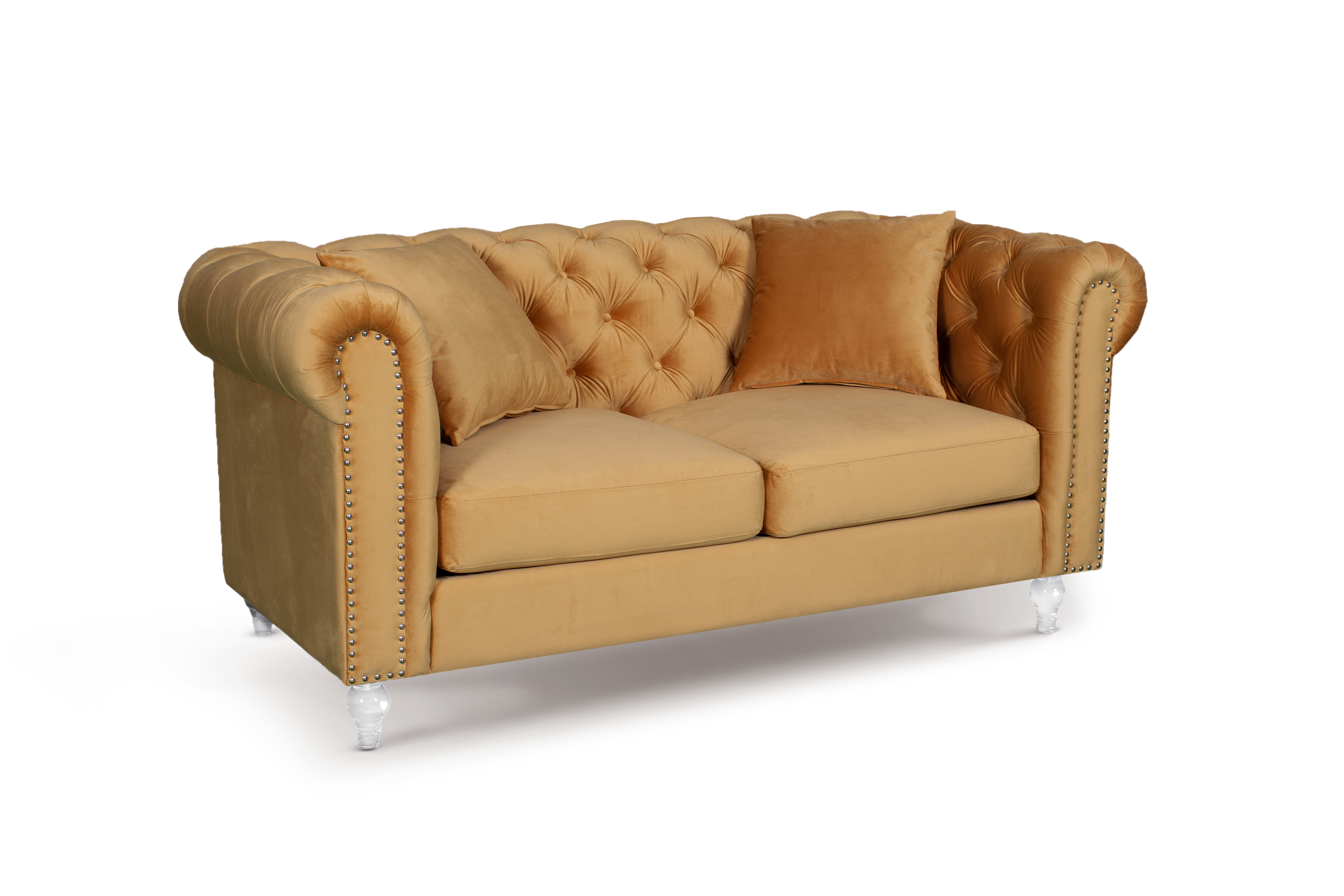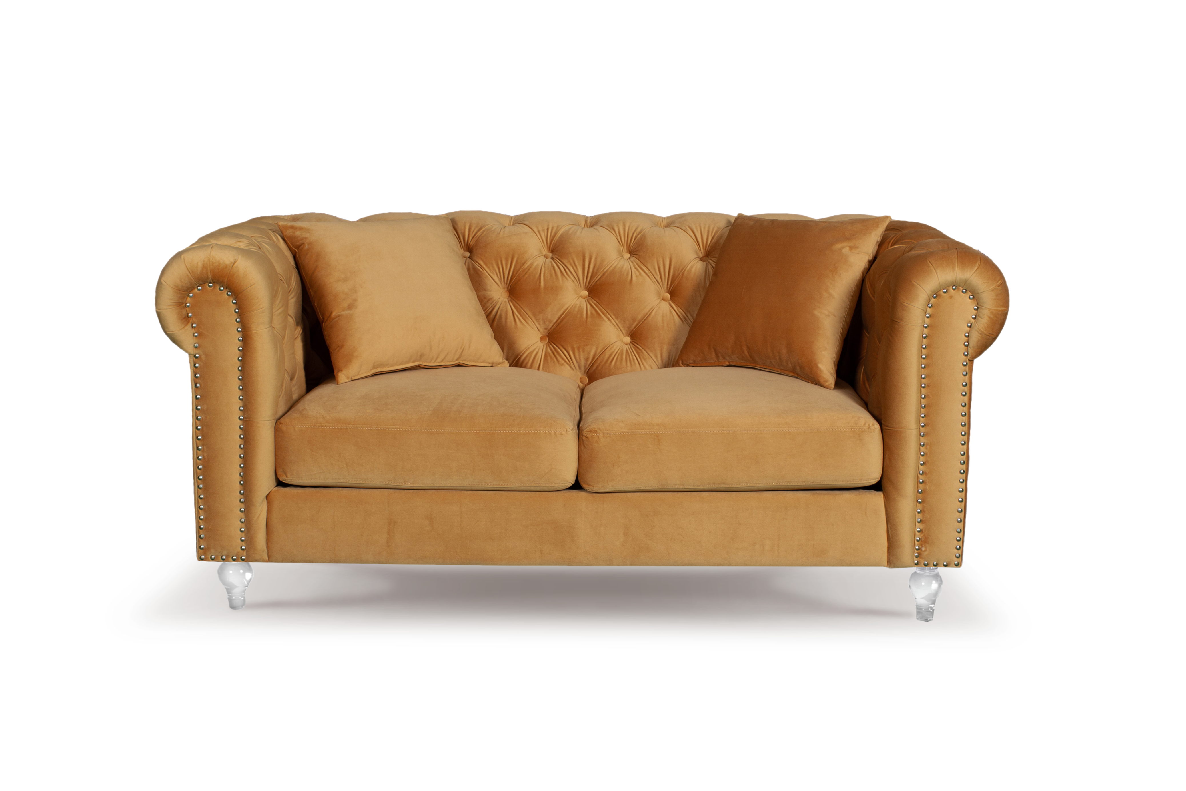 Velvet Gold 3 + 2 Seater Chesterfield Sofa Set With Acrylic Feet CAMDEN