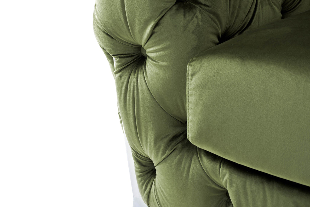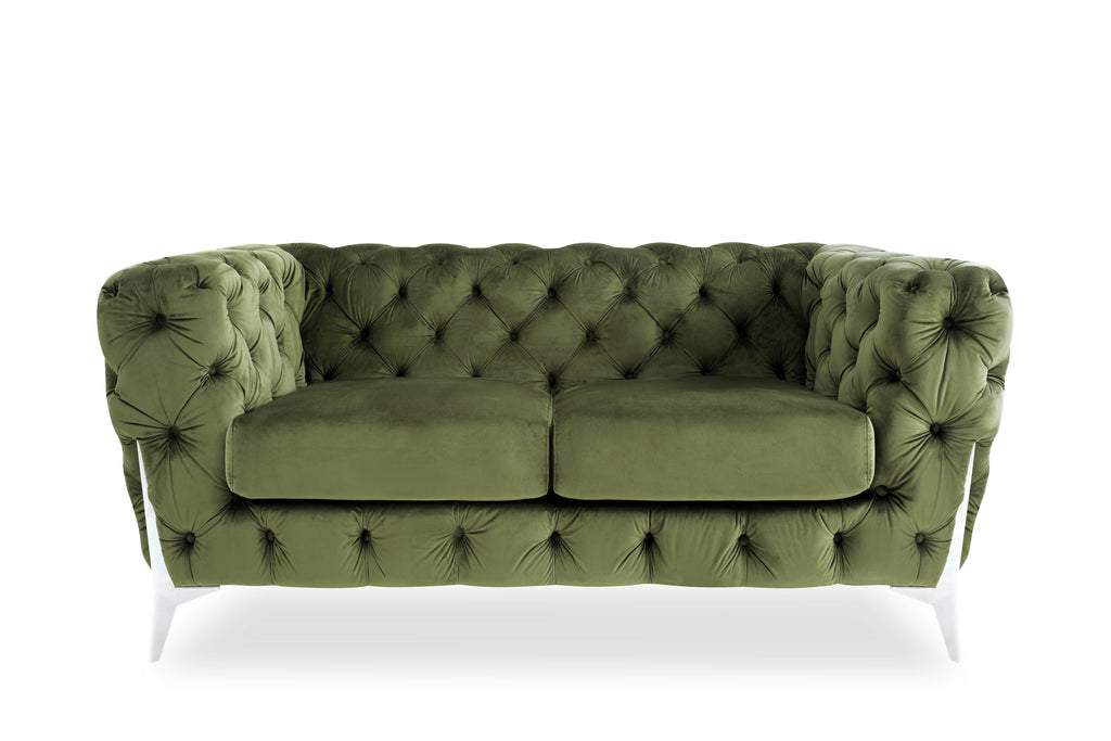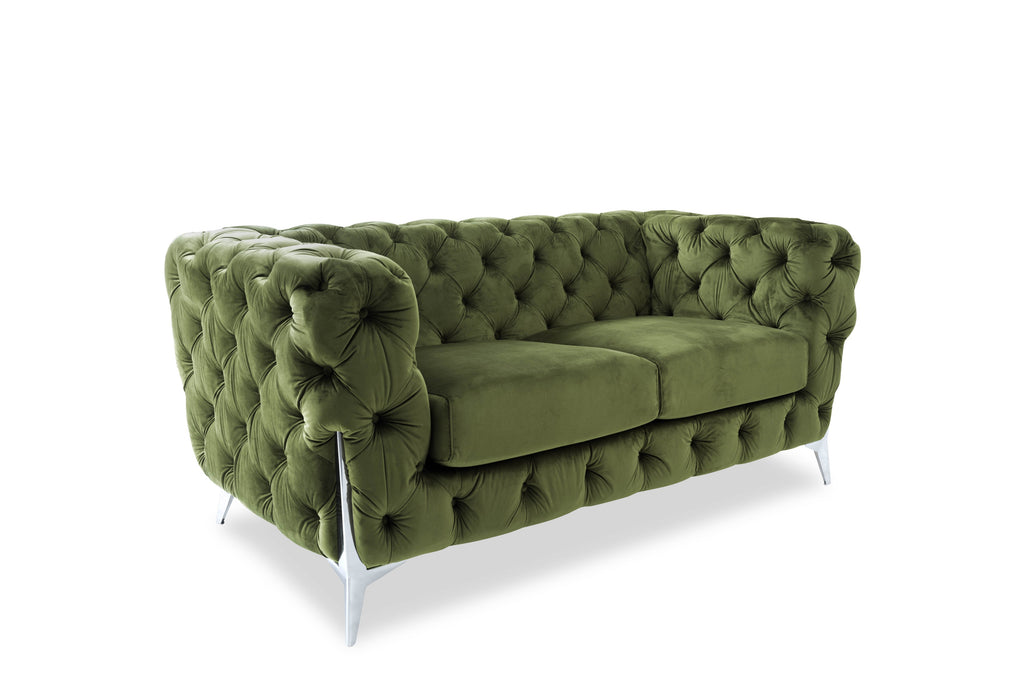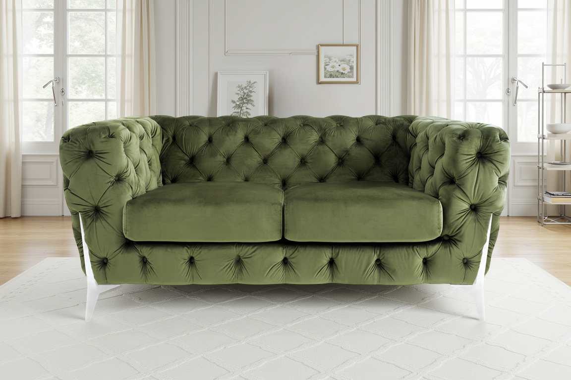 Velvet Sage Green Chesterfield 2 Seater Sofa With Silver Feet ALDERLEY