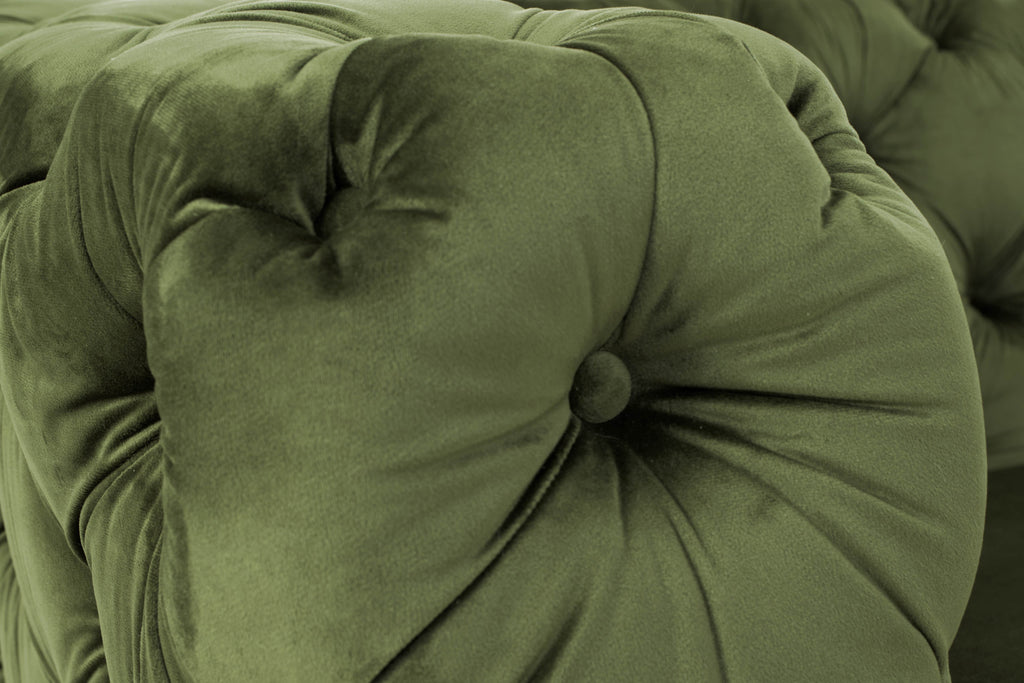 The chesterfield-style design of the Velvet Fabric Chesterfield Sage Green 2 Seater Alderley Sofa lends an air of sophistication and elegance to any space. Its refined silhouette and attention to detail make it a statement piece that will elevate the ambiance of your home. Whether placed in the living room, study, or even a cosy reading nook, this sofa exudes style and charm.